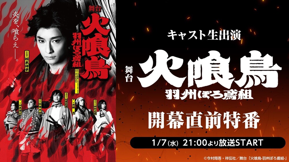 舞台「火喰鳥-羽州ぼろ鳶組-」開幕直前特番への出演が決定しましたのでお知らせいたします。